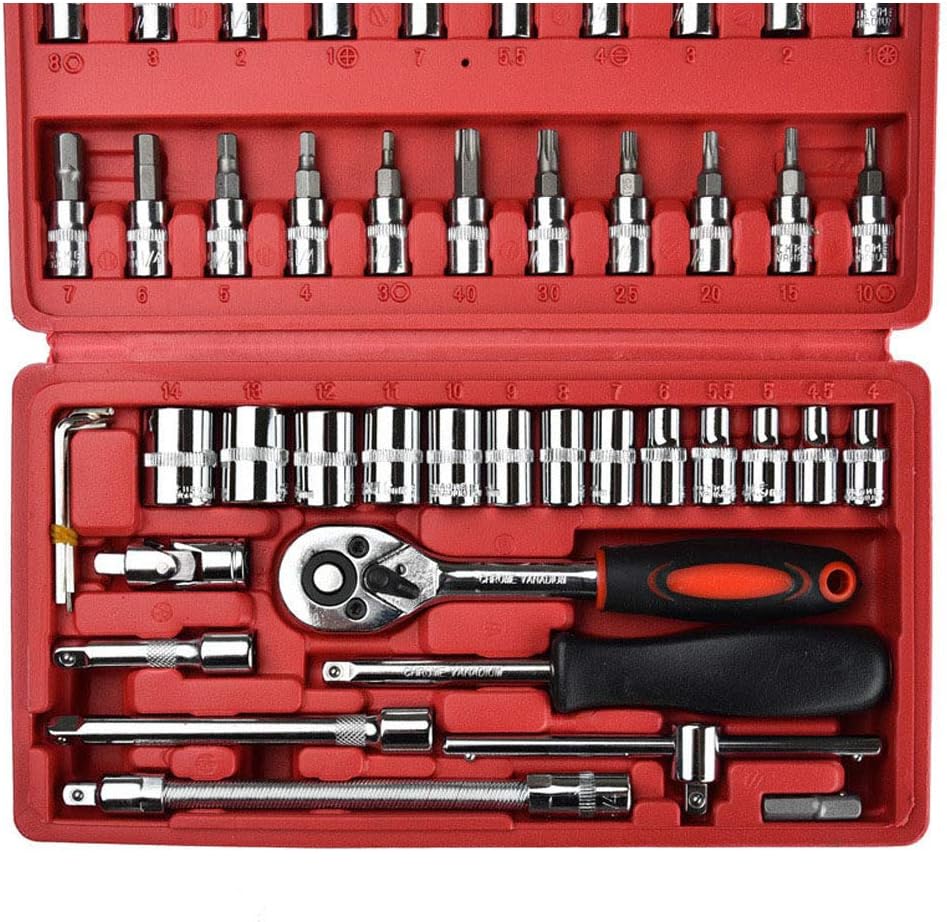 احصل على مجموعة أدوات متعددة الاستخدامات مكونة من 46 قطعة تتضمن مفاتيح الربط وأدوات أخرى ! فبعد الحصول عليها لن تحتاج للبحث عن أي أداة للصيانة بعد الآن.